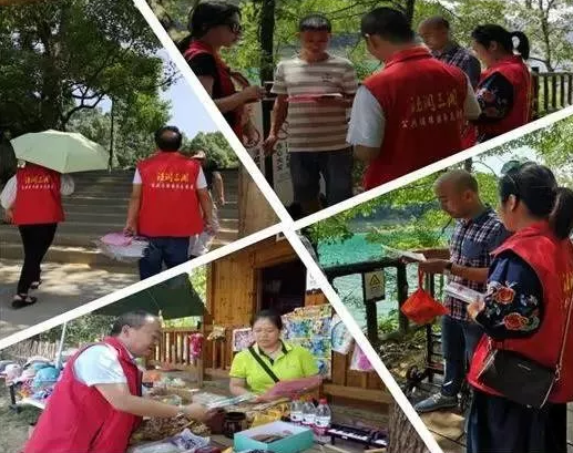 湖南琼武律师事务所、湖南一星律师事务所两所共十多名志愿者前往景区进行污染防治法律法规的宣传,为往来游客发放宣传资料,讲解法律知识,并向景区游客服务中心赠送部分法律宣传资料。