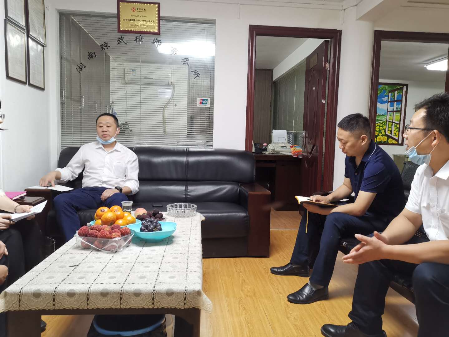 今天上午,中国银行湖南省分行张总及关主任莅临湖南琼武律师事务所总部指导工作。湖南琼武律师事务所执行主任胡杰锋、催收部负责人杨虎等其它律师热情接待,张总一行对我所办公环境、催收流程规范、保密制度等方面进行了全面了解和指导。